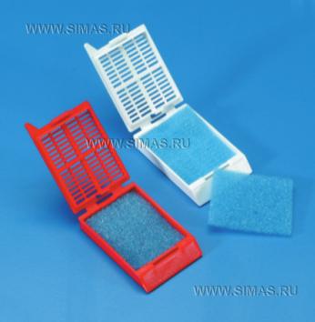 Кассеты для заливки тканей в парафин, универсального типа, с защелкивающейся, легко снимаемой крышкой. Выпускаются следующие цвета: белый, синий, желтый, зеленый, розовый и красный.