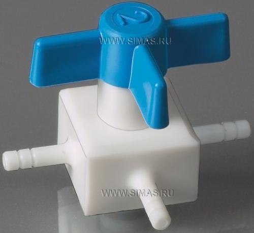 Описание: Обычный запорный кран, на обеих сторонах которого находятся патрубки для трубок. Предназначен для работы при низком давлении.