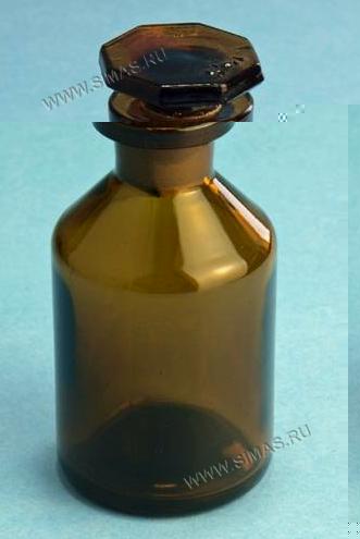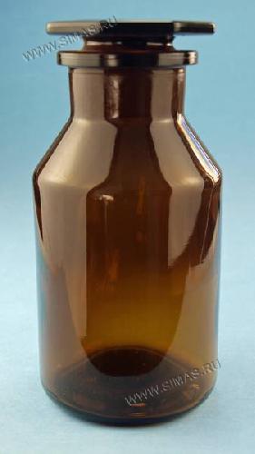 Склянки для реактивов с притертой пробкой и широким горлом, янтарное (темное) стекло