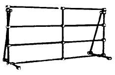 Описание: 700 мм в высоту х 1000 мм в длину. Состоит из 4 стержней 1000 мм длиной, 5 стержней 750 мм длиной и 2 стержней 350 мм длиной, 20 фиксаторов типа "Р", 4-х подставок и Г-образного ключа.