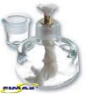 Стеклянная колба спиртовки комплектуется металлическим держателем, втулкой, фитилем и фенопластовым колпачком.