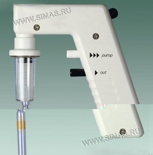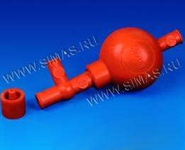 Литая каучуковая груша, объемом приблизительно 60 мл, с тремя клапанами, содержащими стеклянные шарики, которые можно контролировать нажатием пальца. Не имеет металлических частей, которые могли бы корродировать, следовательно, может использоваться с любыми жидкостями, кроме разъедающих резину. Подходит для цилиндрических пипеток объемом 2 – 50 мл. Поставляется с адаптером для пипеток объемом более 20 мл.