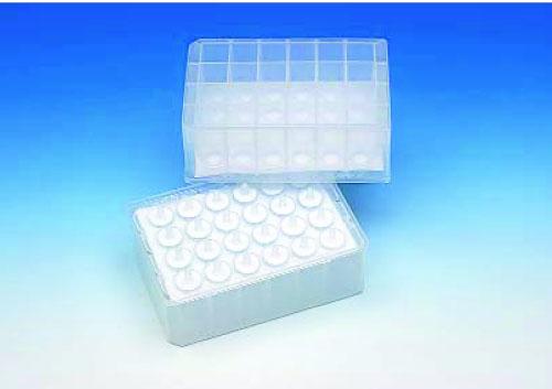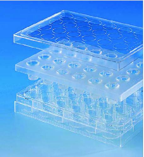 Описание: Микропланшета UniCell на 24 лунки –универсальный продукт, созданный специально для культур тканей. Микропланшета UniCell на 24 лунки состоит из трех компонентов: • Фильтровальный микропланшет на 24 лунки с поликарбонатными мембранами 0.4 мкм • Нижний планшет на 24 лунки с круглыми стенками объемом 3.5 мл (для питающего слоя) • Крышки из полистирола Поликарбонатные мембраны идеальны для культур клеток, так как они не токсичны и не подавляют клеточного роста. Это идеальный материал для получения непрерывного монослоя клеток млекопитающих. Мембрана сохраняет свою прочность во влажном состоянии, позволяя отделять клетки путем отмывки или механического отделения от мембраны. Микропланшеты UniCell Культуральная лунка верхнего планшета плотно вставляется в лунку нижнего планшета. Каждая лунка герметично закрыта и расположена в своей собственной нижней питательной лунке. Все планшеты стерилизованы гамма-облучением и имеют специально обработанную для культивирования клеток поверхность. Зазор между низом мембраны и низом лотка 2 мм. Применение • Изучение проницаемости • Co-культивация • Резистентность ткани • Миграция клеток • Токсикология