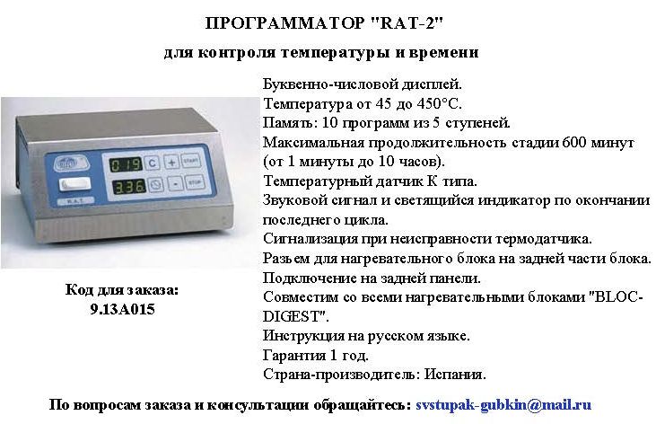 ПРОГРАММАТОР RAT-2 для контроля температуры и времени
