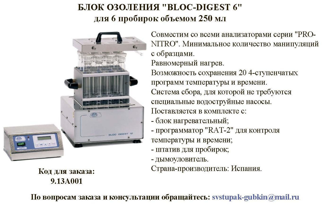 Запросить счёт БЛОК ОЗОЛЕНИЯ "BLOC-DIGEST 6" для 6 пробирок