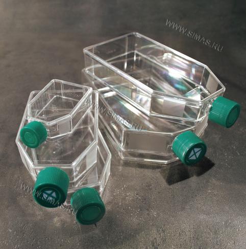 Описание: Стерильный культуральный флакон с «обработанной» поверхностью для выращивания адгезивных культур и тканей. Обеспечивает оптимальное закрепление и рост клеток, из прозрачного апирогенного полистирола. Проградуирован, имеет свой номер. Наличие широкого горла облегчает помещение клеток в флакон, а так же позволяет наиболее точно дозировать клетки.