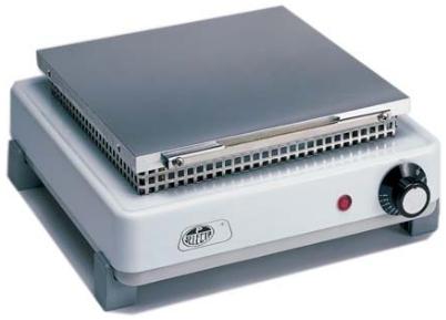 Термостат для регулировки температуры. Защищенный термометр со шкалой от 0 до 130°С. Поверхность защищена химически обработанным алюминием, нагревательные элементы равномерно распределены по поверхности плинки. Эмалированный наружный корпус, стойкий к едким химикатам.