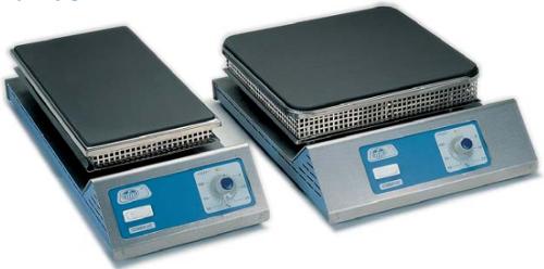 Электронный регулятор мощности нагрева, нагревательные элементы равномерно распределены по поверхности плитки из нержавеющей стали; плитка не деформируется. В задней части прибора есть отверстие для закрепления лабораторной стойки. Корпус из нерж. стали AISI304.