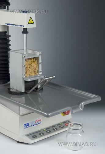 Ячейки имеют передние панели из перспекса для точного расположения лезвий относительно образца и быстрого извлечения для очистки ячейки. Это испытание сочетает сжатие, сдвиг и экструзию.