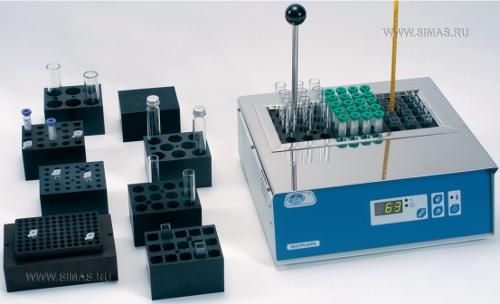 Применение: Для клинических, биохимических и химических лабораторий. Например: инкубация ДНК, ферментативные реакции, определение сухого остатка молока. Инкубация и расплавление агара, культуры клеток, комбинаторная химия, высушивание, кипячение, выпаривание, концентрация, гидролиз, ферментативное расщепление и др. Преимущества по сравнению с жидкостными системами: отсутствие риска испарения нагревающей жидкости, более высокие рабочие температуры, отсутствие перекрестной контаминации между образцами и загрязнения жидкости бактериями.