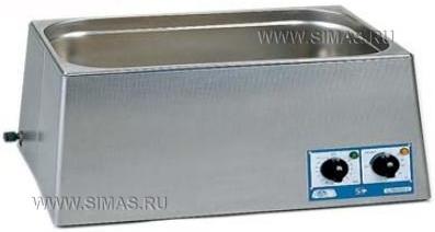Баня с автоматическим поднятием корзины в конце установленного цикла очистки. Операция заканчивается сушкой горячим воздухом от двух турбинных вентиляторов, включающихся сразу после поднятия корзины. Сливное отверстие расположено на передней панели прибора. Съемная корзина.